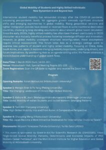 このようなモビリティ転換期ともいえる状況のなか、本国際研究フォーラムでは、アジアを重要な視座として、学生および高度人材のグローバルな移動を再検討する。留学生および留学の延長線上にある高技能者の移動軌跡に着目し、変化する地政学的・経済的・政策的環境のもとで、アジア域内外における移動パターンがいかに再編されているのかを検討する。中国、インド、韓国、日本のモビリティ研究を専門とする研究者を迎え、国際移動の構造的変容、その背景要因、そして将来の人材フローへの含意について議論する。アジアを単なる受入あるいは送り出し地域としてではなく、議題設定を担う主体として位置づけることで、国際人材移動に関するより包摂的かつ動態的な理解の深化を目指す。